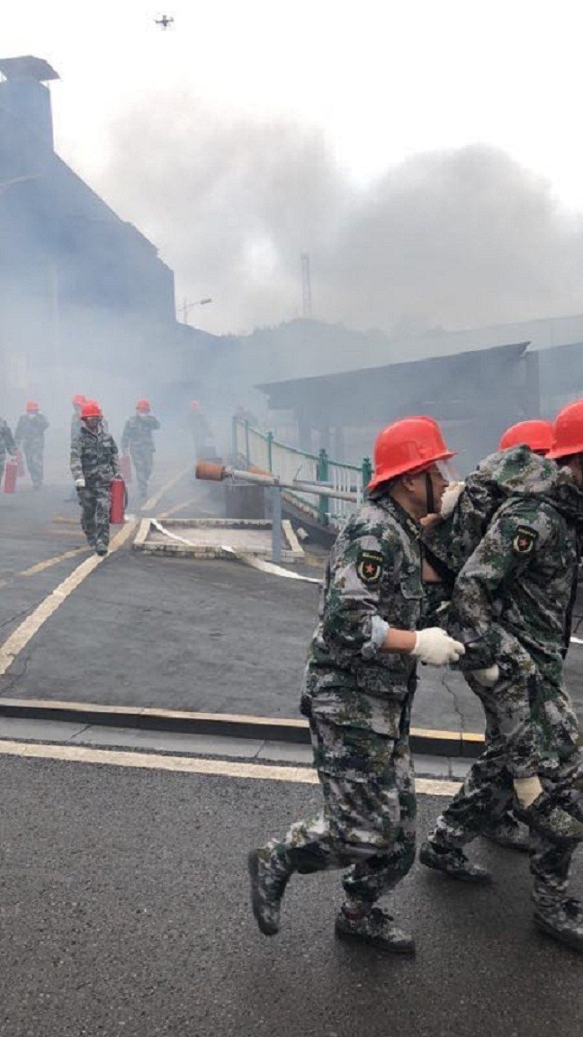 为了检验这13天的训练成果,5月27日下午3点,雨湖消防救援大队、区人武部应急分队、公司应急救援队共60余人在鹤岭分公司开展联合消防演练。区人武部部长龚政军、区应急管理局局长丁书炎、区消防救援大队副大队长苏礼军及鹤岭分公司领导全程观摩指导。随着预先准备好的火点被点燃后,公司应急救援队迅速进入状态,按照各个小组的分工火速跑往火点进行灭火,整体动作干净利落。在雨湖消防救援大队、区人武部应急分队、公司应急救援队救援的默契配合下,成功扑灭火源,救出被困伤员。演练结束后,公司综合应急救援队的表现达到了预期效果,得到现场领导的充分肯定。
