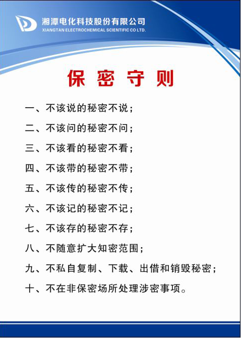 保密工作事关全局,事关公司事业的发展,请大家群策群力、集思广益完善公司保密工作,为奋力开启湘潭电化快速发展新征程而努力。